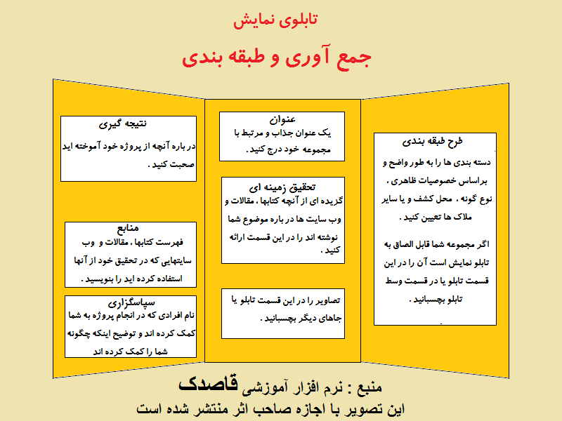 تابلوی نمایش پروژه علمی در زمینه های ( جمع آوری نمونه همراه با طبقه بندی )